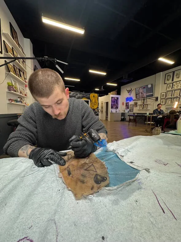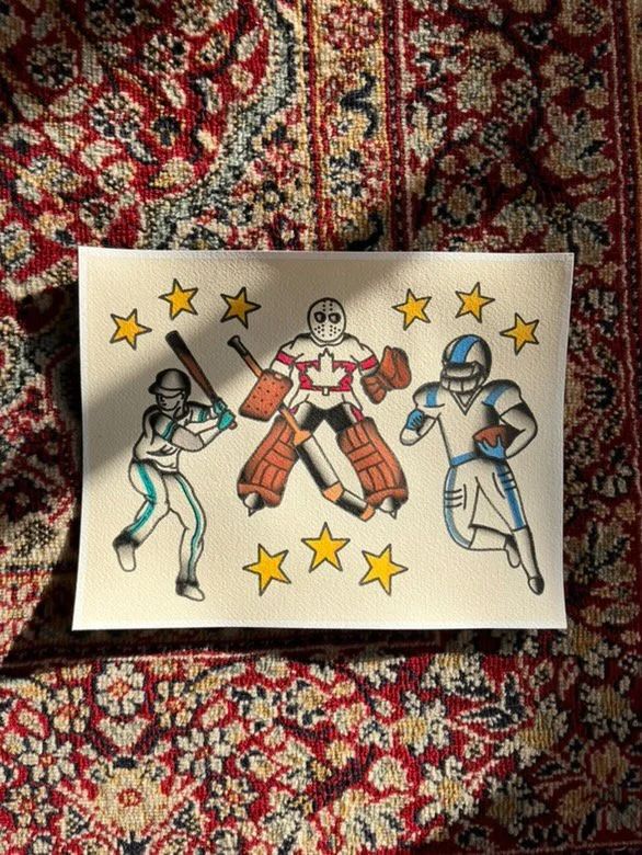 A lot of my work is inspired by American and Japanese traditional tattooing. My interests in hard copy media, turn of the millennium technology, and old sailor tattoos are all present within my art style.